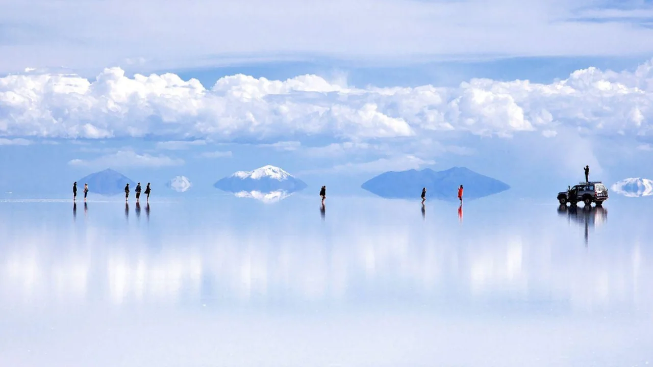 Durante a temporada chuvosa, que vai de dezembro a março, o Salar de Uyuni se transforma em um vasto espelho natural. Uma fina camada de água se acumula sobre a superfície de sal, criando um reflexo perfeito do céu e das nuvens. Isso resulta em fotografias surreais e únicas, com o horizonte praticamente desaparecendo na fusão entre céu e terra.